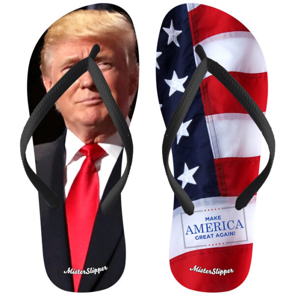 Make America Great Again! These slippers are going to be, it’s true, a huge success. Great succes. Great people buy these slippers, great people. I happen to know a few of them, not the fake great people, but the really great people, tremendously great people, they buy these slippers.